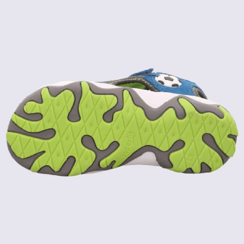 Sandales Superfit, Sandales Motif Foot Garçon En Cuir Bleu Et Gris