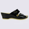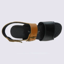 Sandales Vital, Sandales à Talon Compensé Tendances Femme En Cuir Noir/cognac