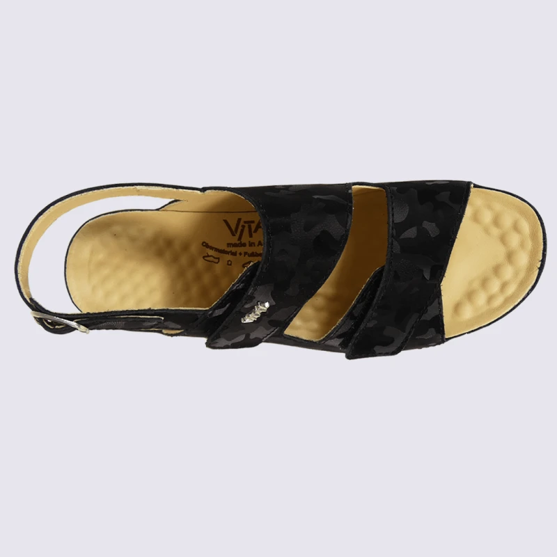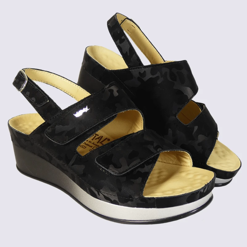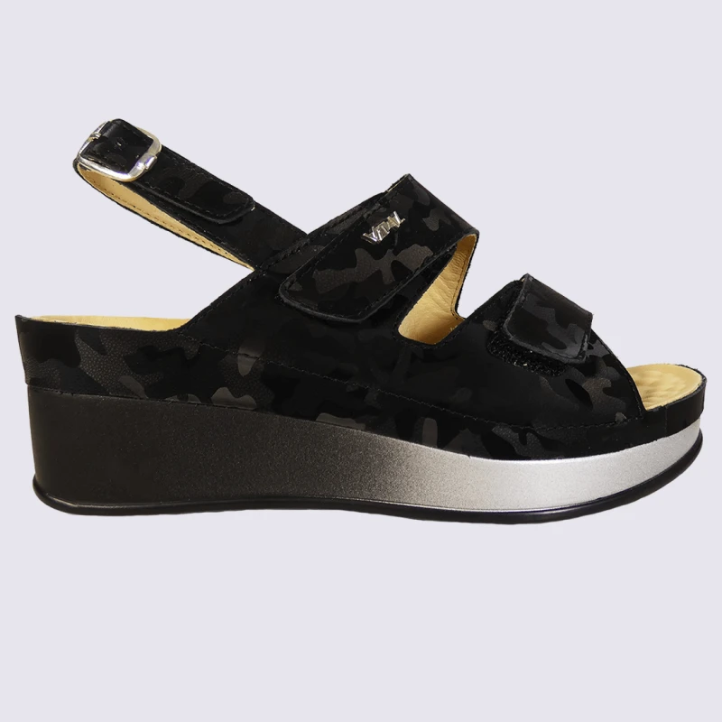 Sandales Vital, Sandales Compensées Motif Camouflage Femme En Cuir Noir
