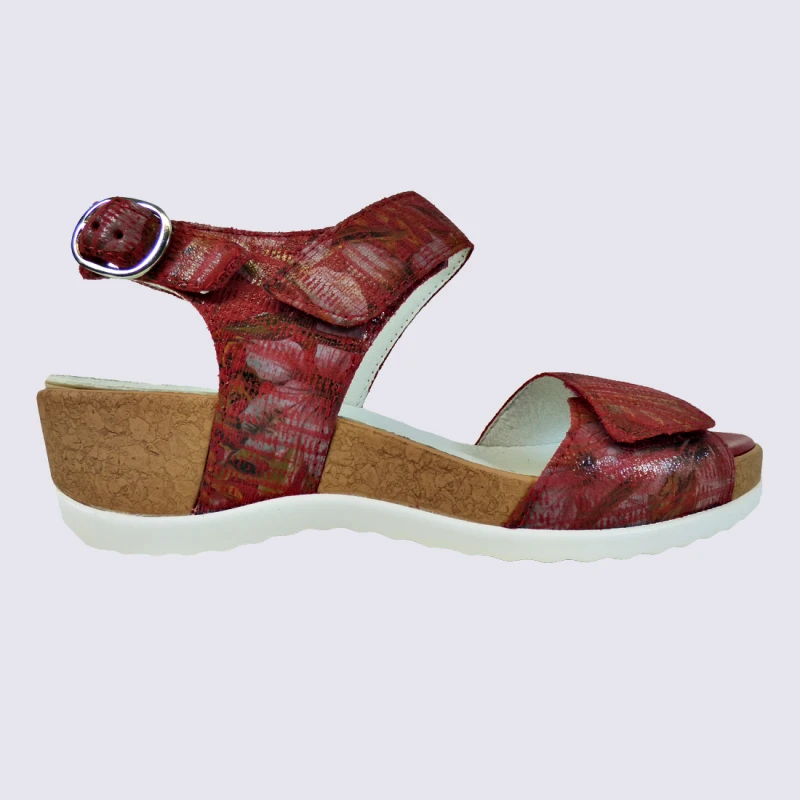 Sandales rouge grande largeur de la marque Waldlaufer 2 brides réglables à velcros et 1 bride à boucle Composition: cuir Talon: 4 cm Grande largeur H Livraison gratuite sous 2 à 4 jours Référence: 933001 rouge