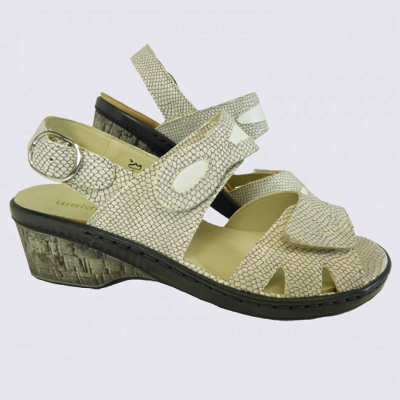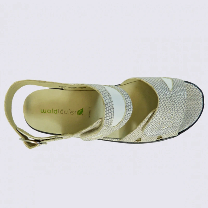 Sandales Waldlaufer, Sandales Largeur H Femme En Cuir Blanc Et Argent