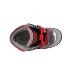 Modèle Superfit à lacet en dessus cuir nubuck gris et tissu noir  entièrement doublé cuir et matelassé au tour de cheville  semelle intérieure amovible cuir
